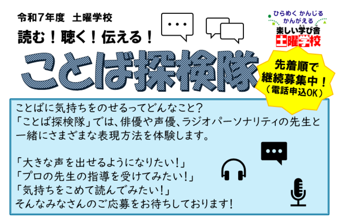 - 2025年12月23日 イベント 【継続募集中】土曜学校「読む!聴く!伝える!ことば探検隊」