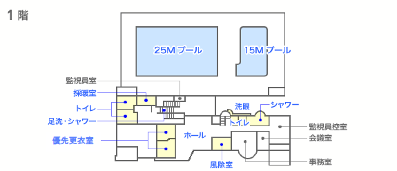 - 25mプール(7コース/水深1.2m~1.4m)(内ウォーキング用1コース)